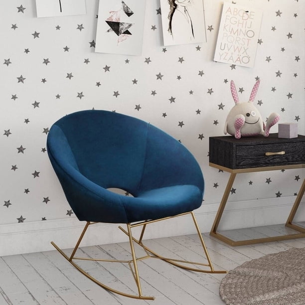 The Nolan rocking chair has clean lines and lavish velvet upholstery. HomePop Velvet Swoop Arm Accent Chairs Navy. Featuring a barrel shaped seat with a key hole back supported by gold iron rockers.