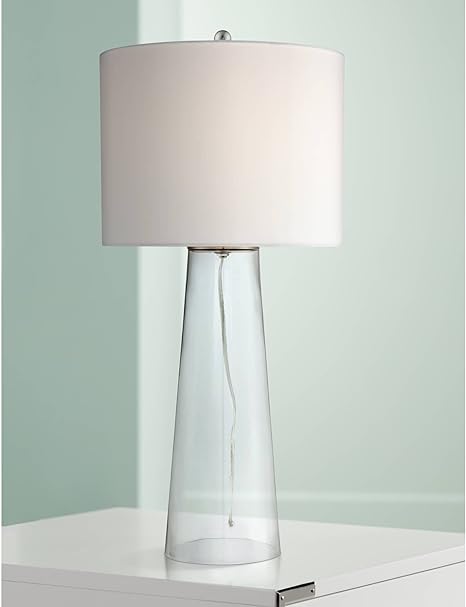 Marcus Coastal Contemporary Table Lamp Clear Glass Tapered Column White Drum Shade Decor For Living Room Bedroom Beach House Bedside Nightstand Home Office Entryway Family 360 Lighting Amazon Com