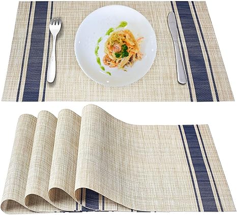 FYY Placemats Placemats for Dining Table Set of 6 Anti-Skid Heat-Resistant Washable PVC Place Mats Durable Stain Resistant Woven Vinyl Kitchen Table Mats Set of 6 Blue 45 out of 5 stars 63 1599. 1099 FREE Shipping on your first order.