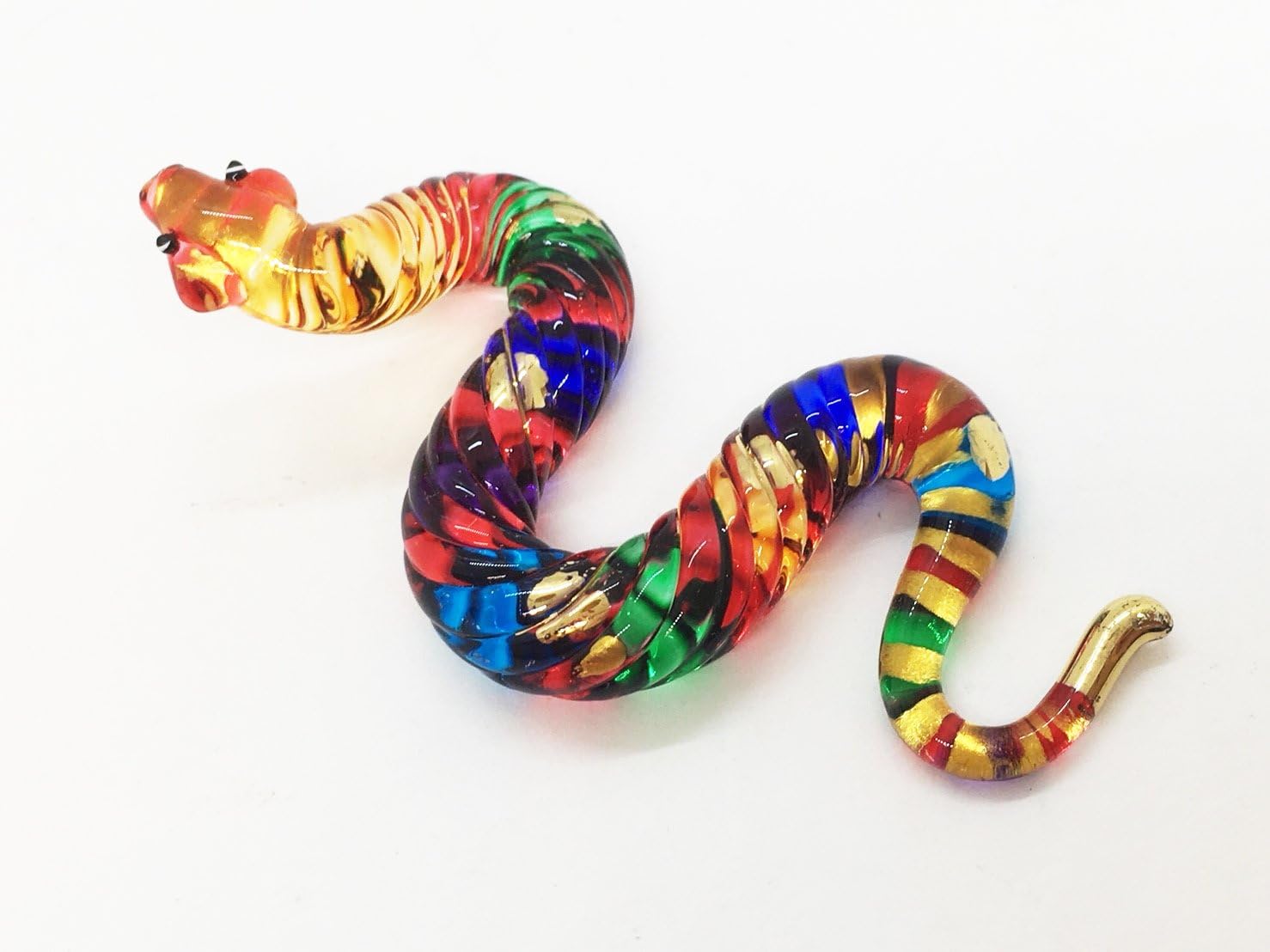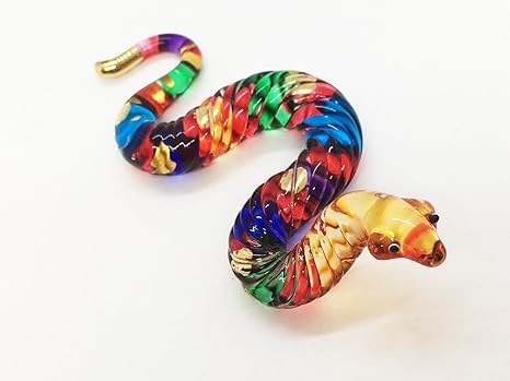 Amazon Com Witnystore Glass Snake Figurine Collectible Animal Art Colored Hand Blown And Painted Glass Miniature Table Decor Collector S Item Perfect For Gifts And Souvenirs 1 5 H X 2 75 L X